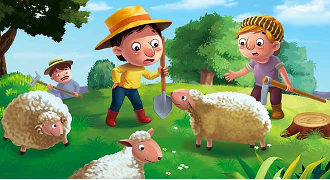 Nhưng khi họ đến nơi họ chỉ thấy chú bé ôm bụng cười ngặt nghẽo vì đã lừa được họ.