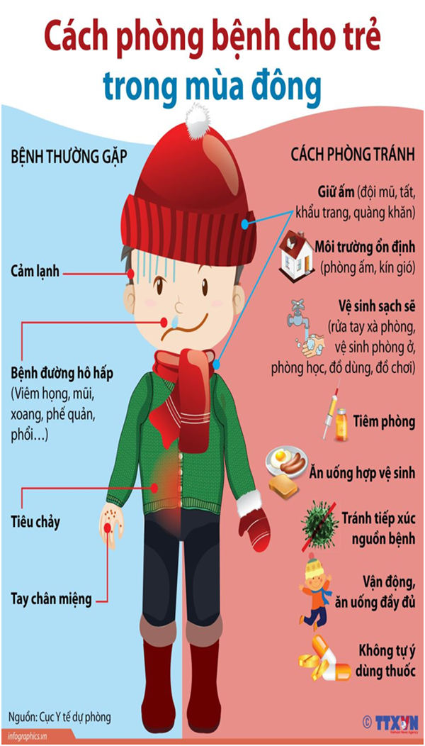 CÁCH PHÒNG TRÁNH CÁC BỆNH THƯỜNG GẶP CHO TRẺ KHI THỜI TIẾT RÉT ĐẬM, RÉT HẠI