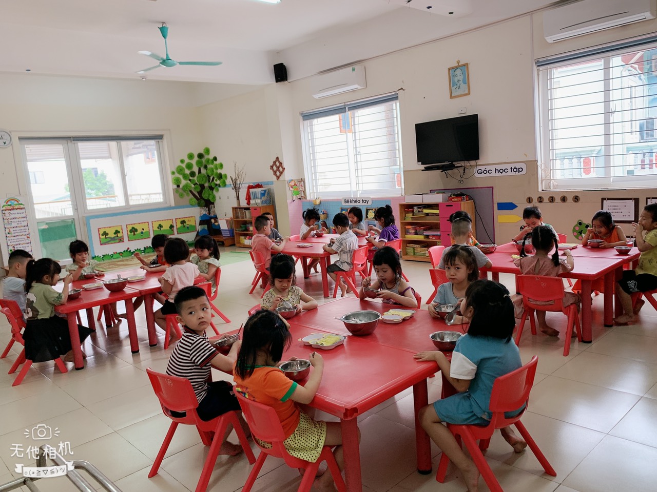 Giờ ăn diễn ra thật vui, bạn nào cũng ăn hết xuất của mình