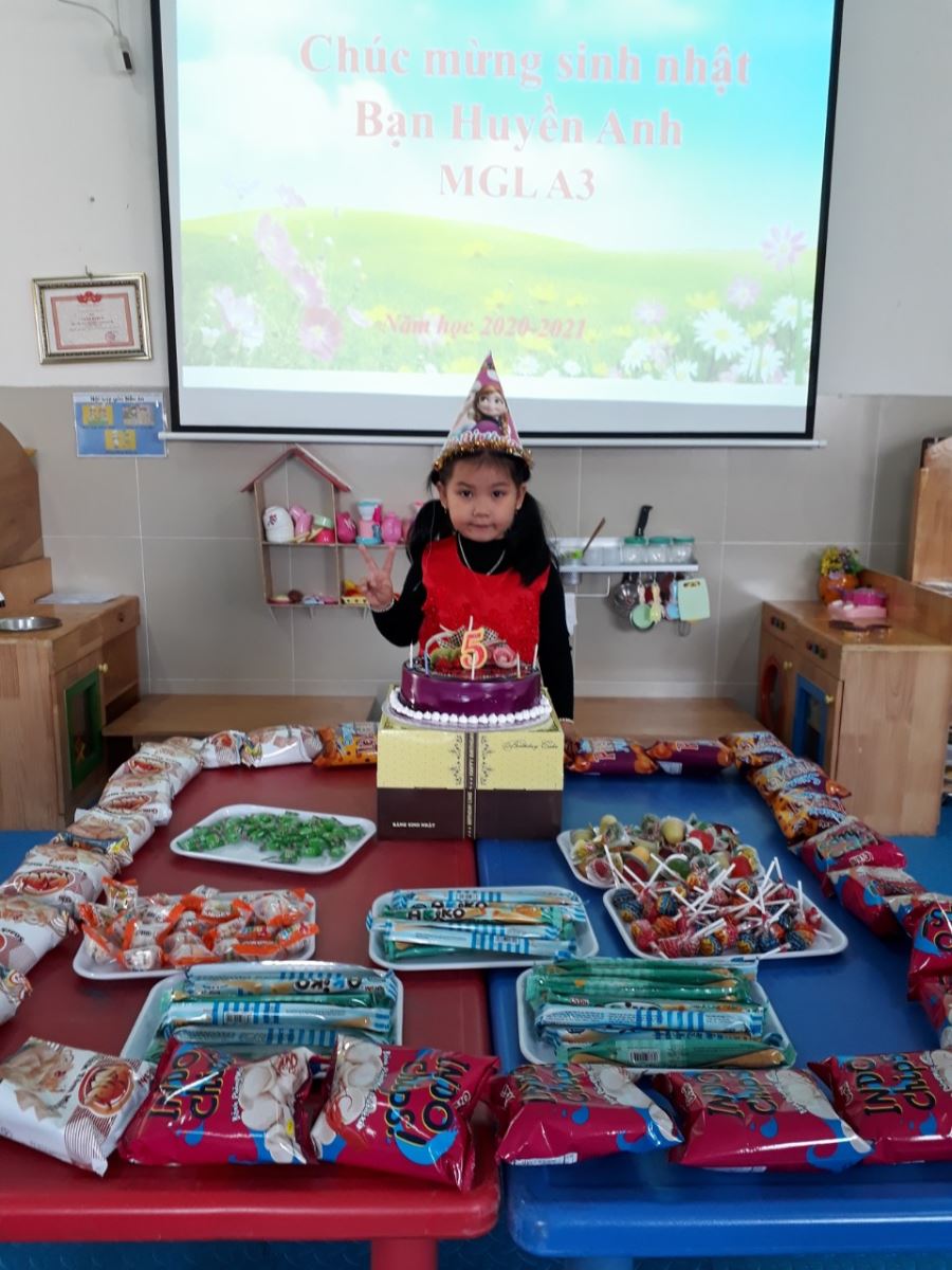 Đối với các bạn nhỏ cứ mỗi khi đén ngày sinh nhật của mình các bạn lại hào hứng được mở tiệc chúc mừng,được thổi nến và cắt bánh sinh nhật. Hôm nay là buổi tiệc dành riêng cho bạn Huyền Anh nói chung và tất cả các bạn nhỏ lớp nói riêng. Hôm nay các bạn ấy rất vui khi được giúp cô giáo trang trí,bày tiệc, giúp cô giáo bóc những gói bánh kẹo ra và sắp xếp các món đồ cho đúng trật tự và không hề chút tranh giành nhỏ ở đây. Không như thường ngày, những giờ trên lớp chỉ có bánh trái vừa phải, hôm nay lại nhộn nhịp, thức ăn ngập tràn, bánh kẹo,những lời chúc ý nghĩa của cô giáo và các bạn gửi tới bạn . Hôm nay là một ngày học đặc biệt mà bạn nhỏ nào trong lớp A3 cũng nhớ. Hình ảnh những nụ cười luôn đọng trên môi các bạn ấy: