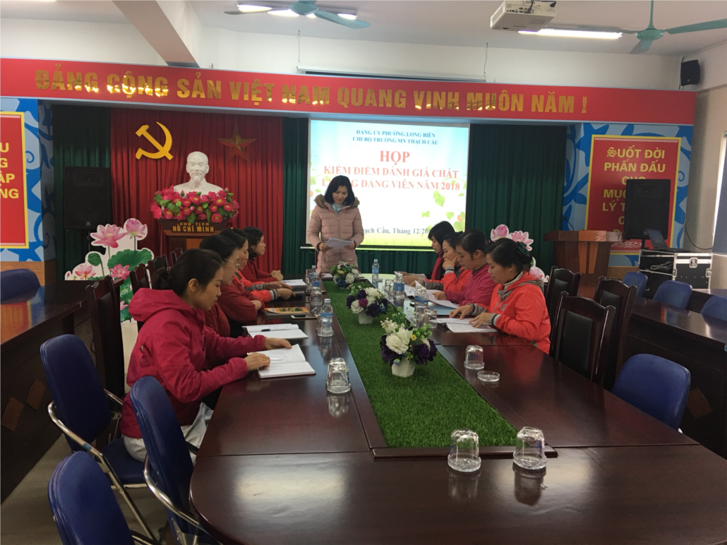 Trong buổi họp, đ/c Lương Thị Tuấn Anh – Bí thư chi bộ - thông báo bảng kiểm điểm tập thể của chi bộ trường mầm non Thạch cầu và xin ý kiến các đồng chí trong chi bộ thống nhất số điểm của tập thể.