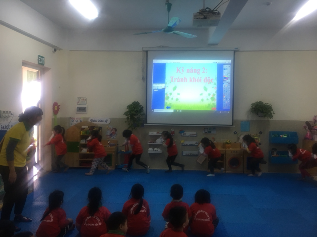 Trong xã hội ngày càng phát triển, không chỉ cung cấp kiến thức cho trẻ là đủ mà cần cung cấp, dạy trẻ những kỹ năng để trẻ có thể ứng biến khi xảy ra vấn đề.Hiểu được tầm quan trọng của việc hình thành cho trẻ những kỹ năng cơ bản trong cuộc sống, phù hợp với lứa tuổi và khả năng của trẻ, đồng thời được sự đồng ý của đ/c Hiệu trưởng nhà trường, tổ chuyên môn phối hợp với ban chuyên môn tổ chức mời ban phụ huynh các lớp tham dự các hoạt động dạy kỹ năng thaots nạn khi bị bắt cóc và khi có cháy tại 02 lớp mẫu giáo lớn.