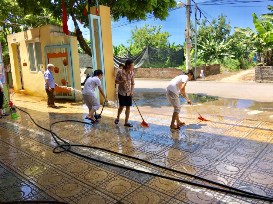Kết hợp các hoạt động vệ sinh của các lớp, Sáng thứ 7 ngày 5/8/2017 công đoàn trường và chi đoàn trường kết hợp lao động tổng vệ sinh toàn trường . Các đoàn viên cọ rửa toàn bộ sân gạch, sân cỏ, kiểm tra các dụng cụ chứa nước, thả cá trong trong chậu trồng sen, loại bỏ toàn bộ môi trường cho muỗi sinh sống để bảm bảo một môi trường an toàn cho các con .
