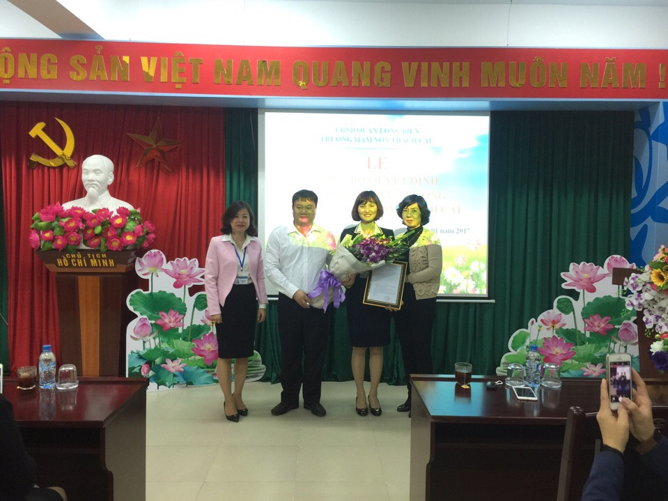 Qua một thời gian thử thách , với những cố gắng , nỗ lực và kết quả đạt được trong công việc ,UBND quận Long Biên , phòng nội vụ kết hợp với PGD & DDT quận Long Biên quyết định bổ nhiệm đ/c Lương Thị Tuấn Anh làm hiệu trưởng trường mầm non Thạch Cầu từ ngày 1/1/2017