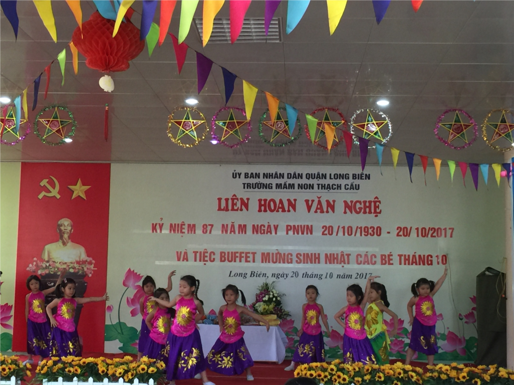 Nhân dịp này, công đoàn trường mầm non Thạch Cầu tổ chức sinh nhật cho các đoàn viên có sinh nhật trong tháng 10. Đ/c Lương Thị Tuấn Anh- Bí thư chi bộ _ hiệu trưởng nhà trường có bó hoa tươi thắm và món quà nhỏ chúc mừng sinh nhật các đồng chí. Thay mặt nhà trường và công đoàn nhà trường xin gửi tới các đ/c GV,NV có sinh nhật trong tháng 10 những lời chúc tốt đẹp nhất, chúc các đ/c luôn mạnh khỏe, vui vẻ, hạnh phúc và cống hiến hết mình cho sự nghiệp trồng người.