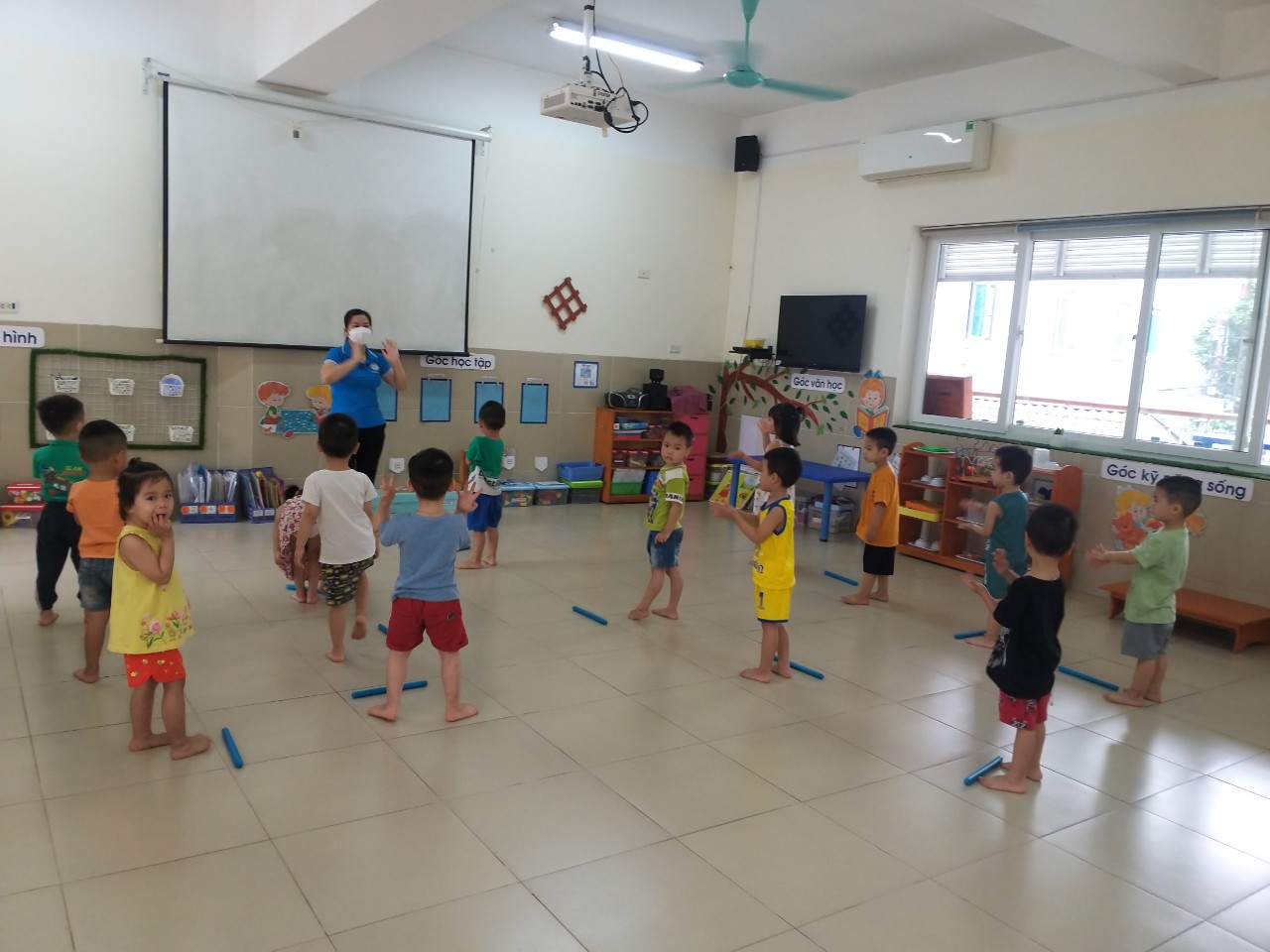 Thể dục sáng của các bé lớp MGB C1 trường mầm non Thạch Cầu vào mỗi buổi sáng, tất cả các bé trường Mầm non Thạch Cầu lại háo hức và mong chờ đến hoạt động thể dục sáng. Khi tiếng nhạc vang lên bé nào cũng nhanh nhẹn chuẩn bị xếp hàng tập thể dục và vận động theo nhạc. Nhìn các bé vẻ mặt thật háo hức tập các động tác của bài tập thể dục sáng gồm: Hô hấp, động tác tay, động tác chân, lưng bụng, bật nhảy. Các bé Trường Mầm non Thạch Cầu kết thúc bài tập thể dục sáng bằng một điệu múa rất uyển chuyển, nhẹ nhàng theo lời bài hát. Bé nào cũng cố gắng tập thật đẹp, đúng các động tác cùng với các cô giáo hướng dẫn của lớp mình.