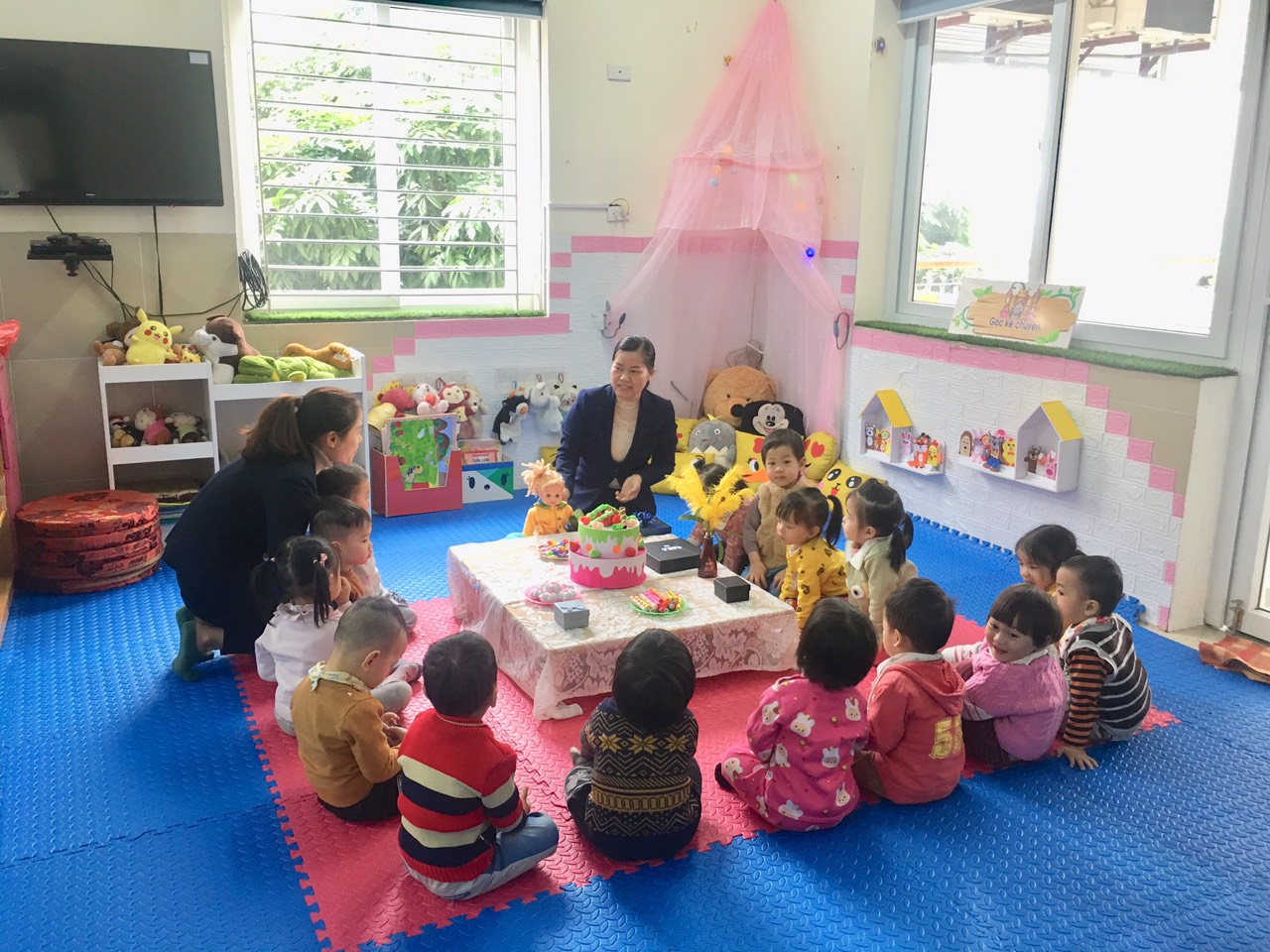 Cô giáo đã tổ chức buổi sinh nhật cho bạn búp bê, qua đó trẻ biết thể hiện cảm xúc của mình phù hợp với từng hoàn cảnh. Phát triển kĩ năng giao tiếp giúp trẻ mạnh dạn, tự tin. Ngoài ra còn