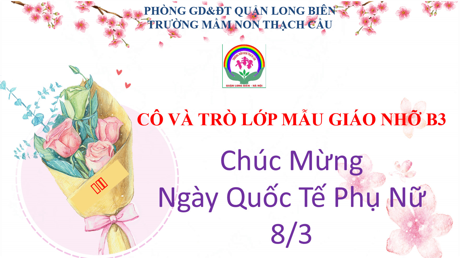 Và cũng thật hạnh phúc biết bao khi mỗi năm có một ngày dành cho cô, cho mẹ: Ngày 8/3. Ngày 8/3 năm nay thật đặc biệt, cô và các con được gặp gỡ, giao lưu qua màn ảnh nhỏ. Bạn nào cũng bỡ ngỡ, xen lẫn háo hức, phấn khởi khi được trò chuyện với cô và các bạn cùng tìm hiểu về ngày 8/3, cùng chơi 1 số trò chơi, hát các bài hát tặng mẹ, tặng bà, tặng cô và các bạn, qua đó các con cảm nhận được hơi ấm của tình yêu thương các cô dành cho bé cũng như của các bé dành cho cô giáo mến yêu!