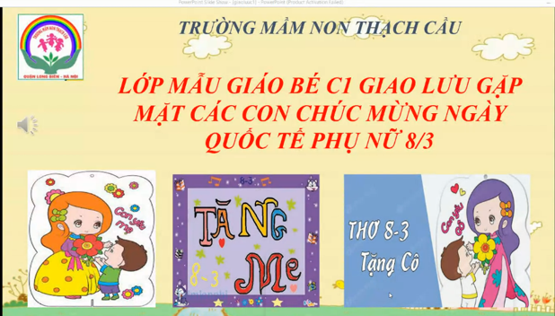 Ngày 8/3/2022, hòa trong không khí ngập tràn nắng xuân trong tình thân ái, tình đoàn kết, Lớp MGB C1 trường mầm non Thạch Cầu tổ chức gặp mặt trực tuyến với các bậc phụ huynh và các con nhân kỷ niệm 112 năm ngày Quốc tế Phụ nữ 8/3 .