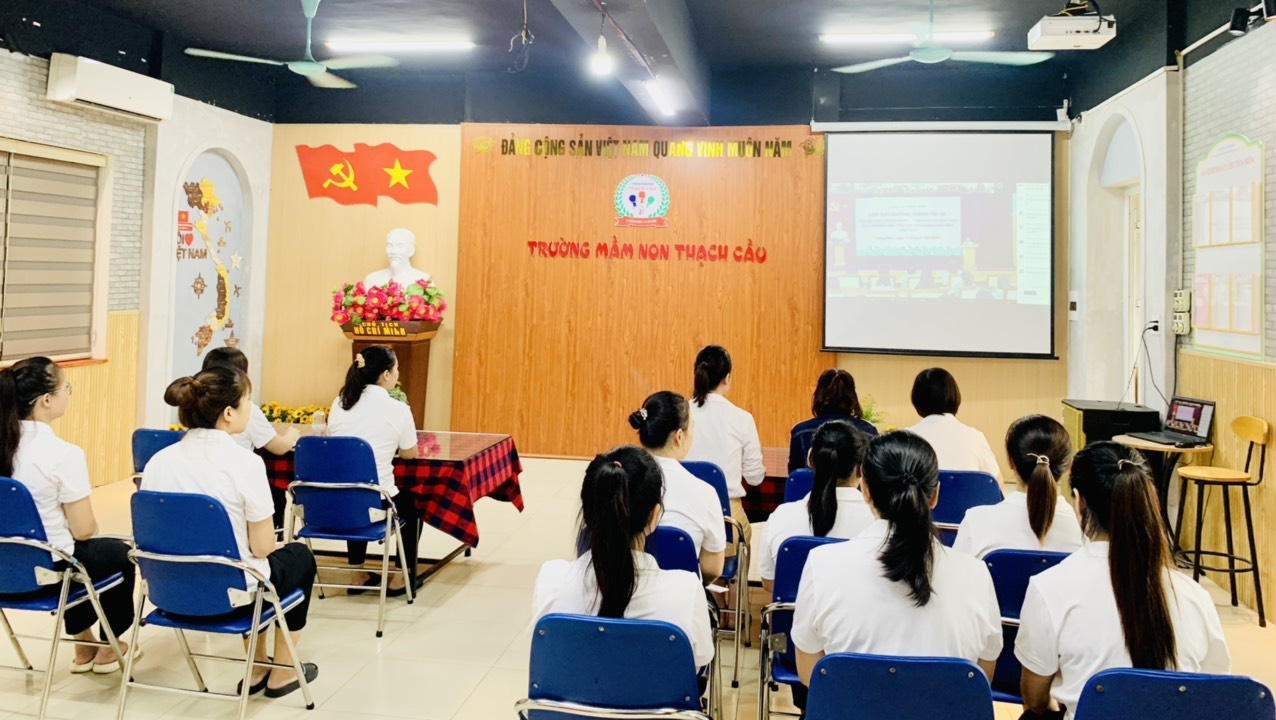 Thực hiện quyết định số 597-QĐ/UBND ngày 07/08/2024 của Quận ủy Long Biên về việc tổ chức lớp bồi dưỡng chính trị hè cho đội ngũ quản lý giáo dục và giáo viên các trường học trên địa bàn quận Long Biên năm 2024. Sáng ngày 16/08/2024 toàn thể CBQL và giáo viên nhà trường đã nghiêm túc tham gia buổi tập huấn dưới 2 hình thức trực tuyến và trực tiếp. Việc bồi dưỡng chính trị hè cho đội ngũ đã được trường mầm non Thạch Cầu thực hiện nghiêm túc góp phần nâng cao về nhận thức chính trị cho đội ngũ CBQL và đội ngũ giáo viên trong nhà trường.