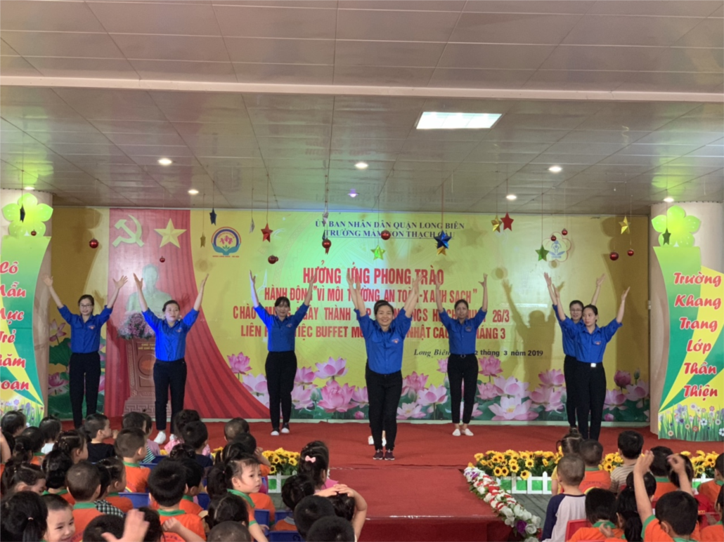 Hòa chung không khí hào hùng của tuổi trẻ cả nước hướng tới kỉ niệm 88 năm ngày thành lập Đoàn TNCS Hồ Chí Minh (26/3/1931-26/3/2019). Được sự đồng ý của chi bộ Đảng, ban giám hiệu nhà trường, Chi đoàn thanh niên trường MN Thạch Cầu tổ chức buổi lễ mít tinh chào mừng kỷ niệm 88 năm ngày thành lập đoàn TNCS Hồ Chí Minh (26/3/1931-26/3/2019 hưởng ứng phong trào hành động “ vì môi trường an toàn – xanh sạch.