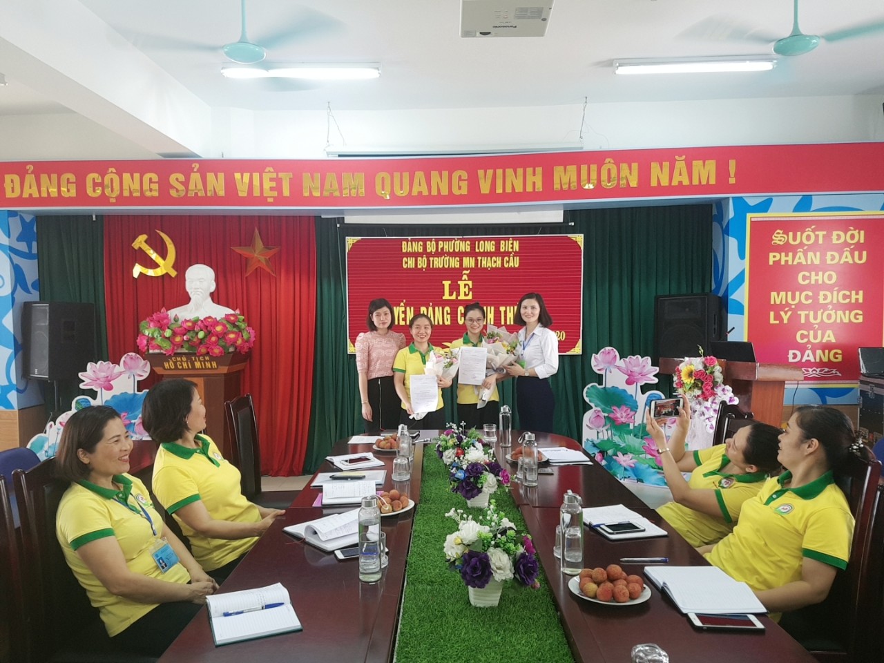Tham dự lễ chuyển đảng chính thức có đồng chí Lương Thị Tuấn Anh – Bí thư chi bộ cùng các đồng chí đảng viên và quần chúng ưu tú trong nhà trường.