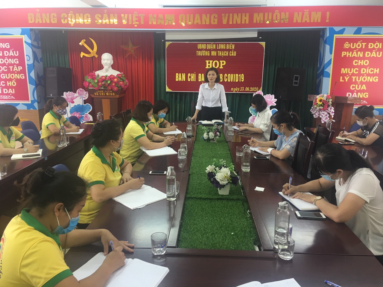 Sáng ngày 13/8/2020 trường mầm non Thạch Cầu tổ chức họp ban chỉ đạo phòng chống dịch Covid-19 và triển khai công tác phòng chống dịch bệnh trong trường học.