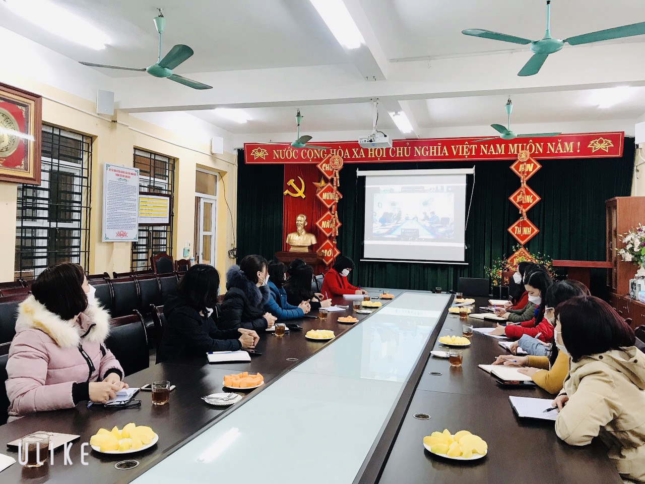 Thực hiện công văn số 15/PGD&ĐT ngày 09/02/2022 của Phòng GD&ĐT quận Long Biên về việc tham dự hội nghị trực tuyến về công tác phòng chống dịch Covid-19 trong trường học khi đón học sinh trở lại học tập. Trường MN Thạch Cầu đã tham dự hội nghị trực tuyến gồm các đ/c sau: