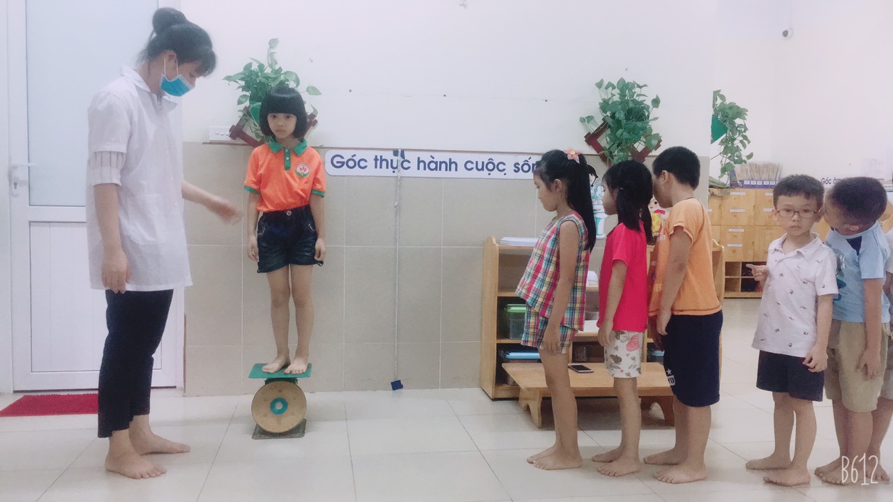 Thực hiện kế hoạch công tác tháng 8/2020 của nhà trường.Sáng ngày 3 tháng 8 năm 2020, y tế kết hợp với giáo viên các lớp trong nhà trường tổ chức cân đo cho trẻ tham gia học hè.