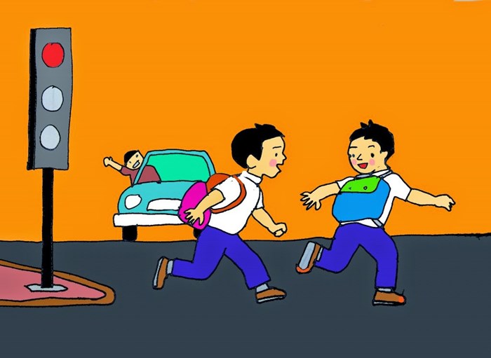 – Chúng cháu xin lỗi chú. Lần sau sang đường chúng cháu sẽ nhớ nhìn tín hiệu đèn màu ạ!