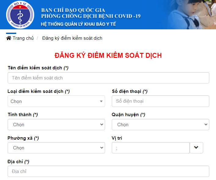 Bước 1: Truy cập địa chỉ https://tokhaiyte.vn để thực hiện khai báo thông tin (Tên điểm kiểm soát dịch/Số điện thoại/ Địa chỉ liên hệ yêu cầu phải chính xác….)